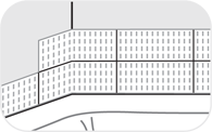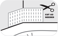 A single sheet of SimpleMat must run across a corner with at least 1" (25 mm) of excess material on each wall.