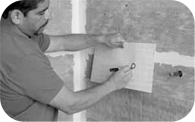 Install 1/2" (13 mm) cement backerboard for wall installation. Cut open areas to support plumbing fixtures.